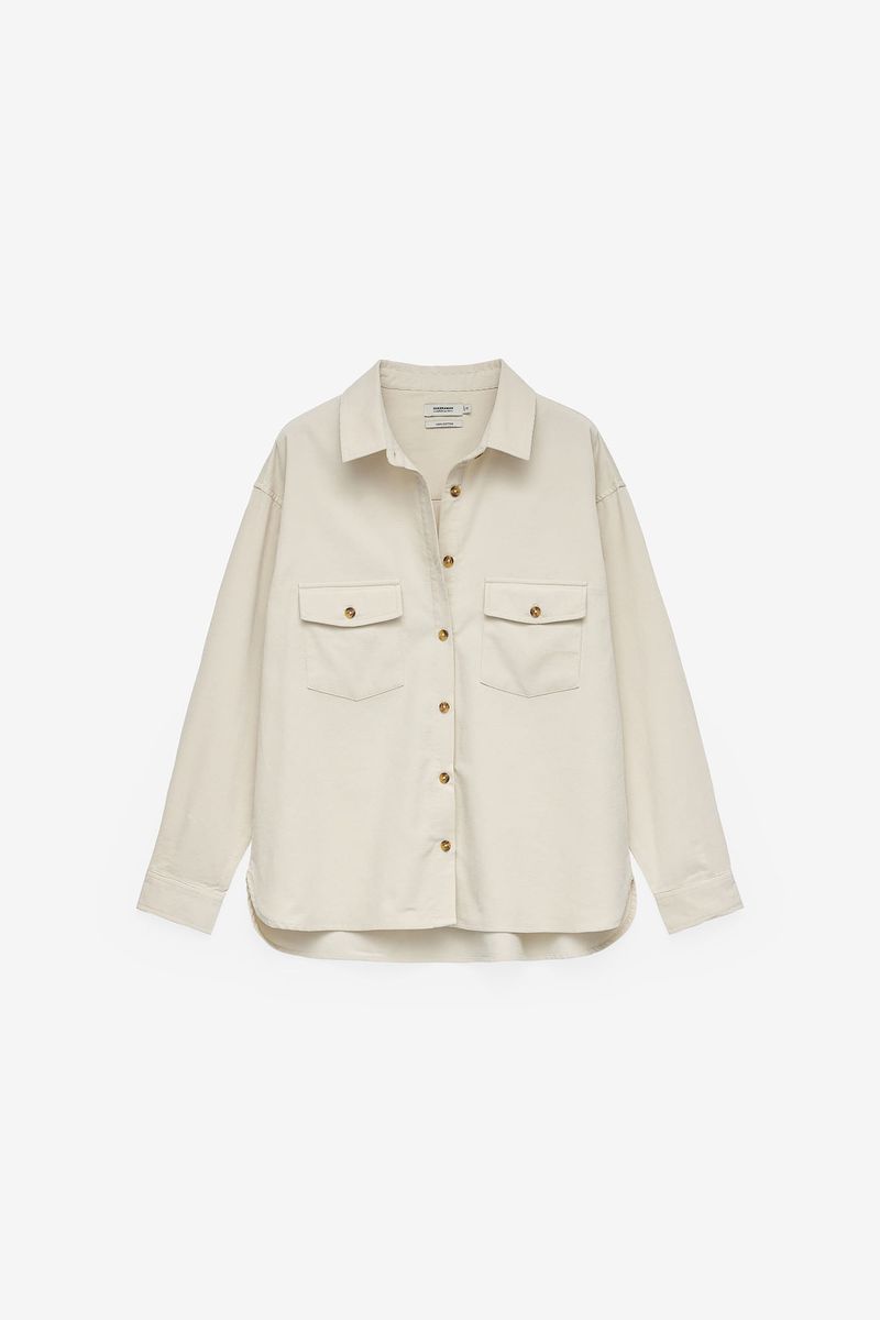 Bet on comfort and style with this oversized bombazina shirt for women, made of 100% cotton for a soft and natural touch. The relaxed design combines with classic details, such as the front with buttons and two flap pockets, ensuring a modern look without losing functionality. Versatile and easy to combine, it can be worn as a shirt or as a light duster, making it the perfect choice for casual and contemporary looks throughout the season.