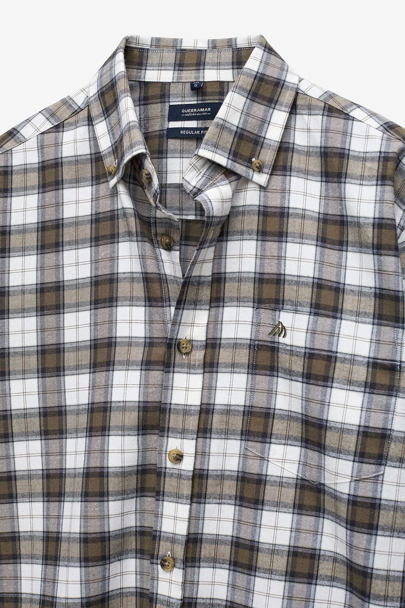 The model features a button-down collar, a front placket with contrasting buttons and adjustable cuffs. The discreet tonal embroidery on the chest complements the design with a touch of Quebramar identity. Perfect to coordinate with jeans, chinos or knitwear, it's an essential piece for casual or semi-formal looks during fall and winter.