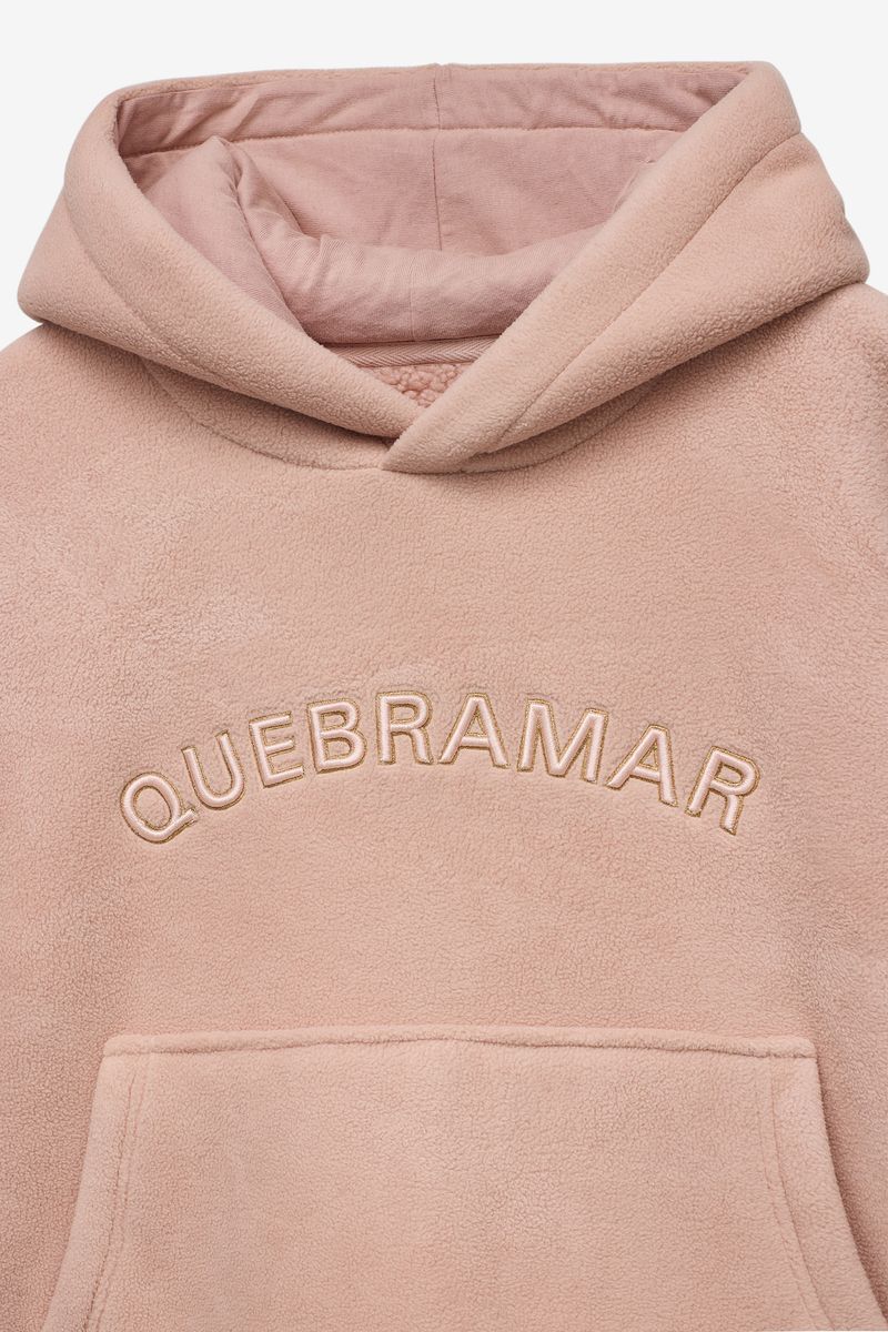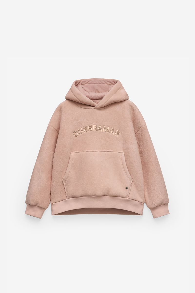 With a relaxed cut, front kangaroo pocket and “QUEBRAMAR” embroidery on the chest, this model stands out for its modern and cozy design. Available in black, old pink and khaki, three versatile colors that match any casual look.