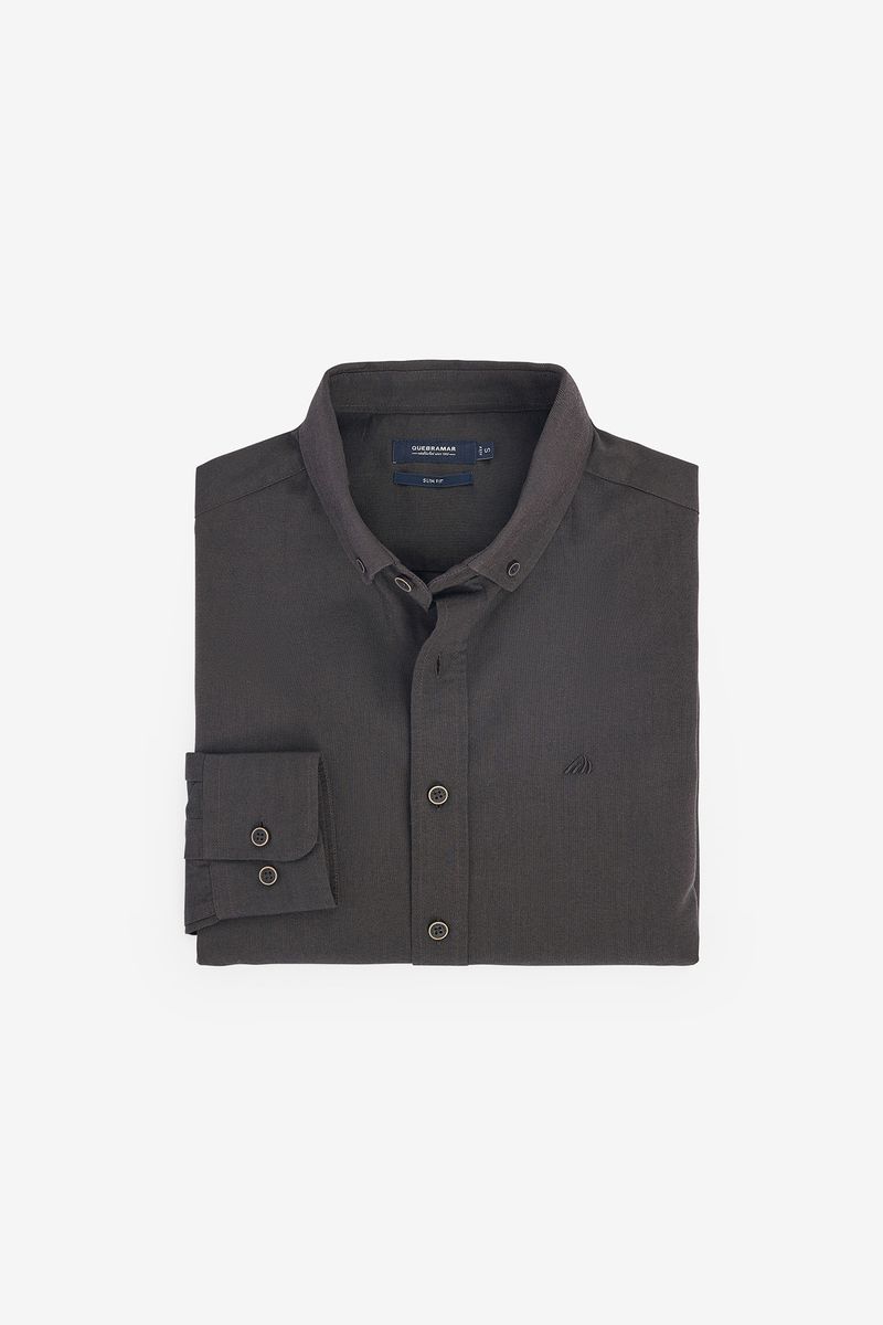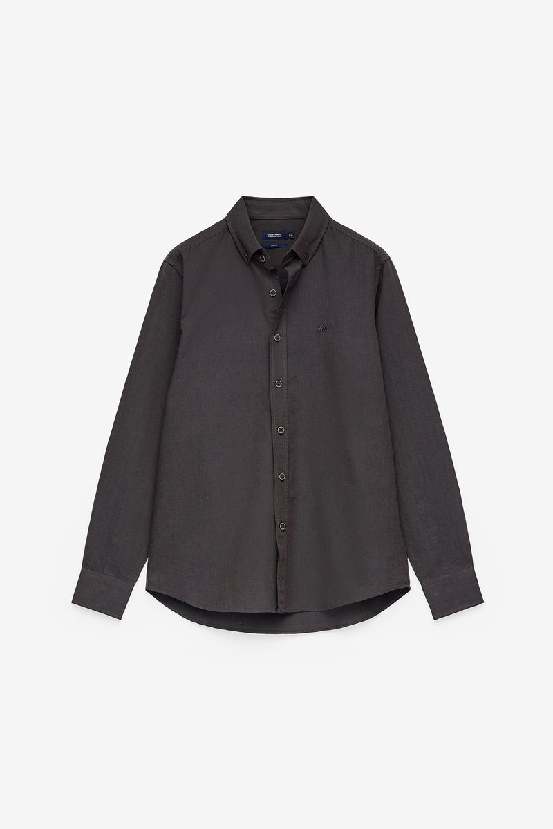 Long sleeve shirt, made of light and comfortable fabric. It has a classic fit, a structured collar with buttons on the collar and a front button closure. The small embroidery on the chest adds a discreet touch of style, ideal for composing casual or social looks with elegance. Versatile, it goes well from work to everyday life with practicality.