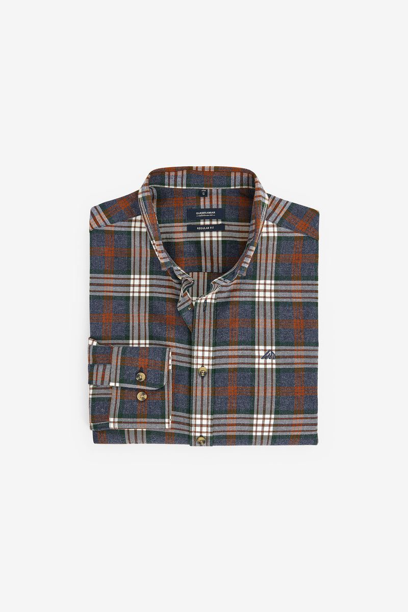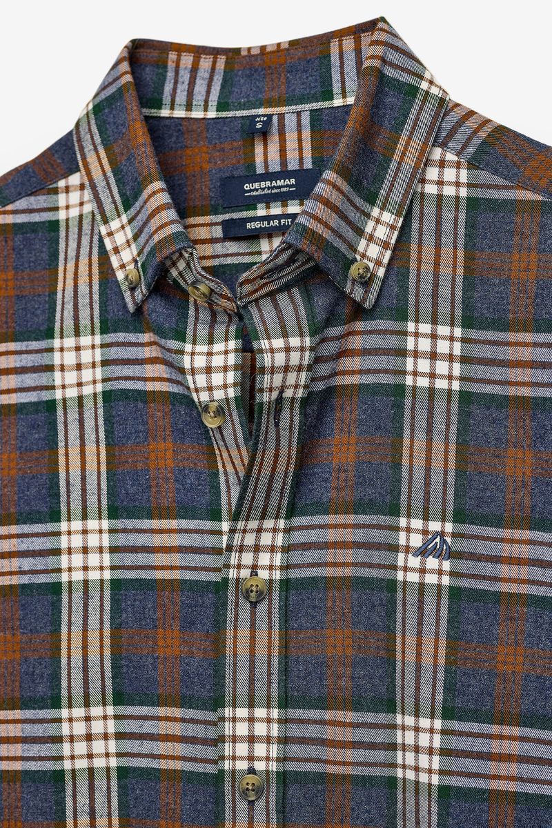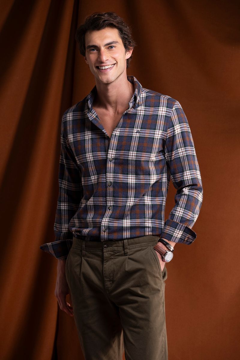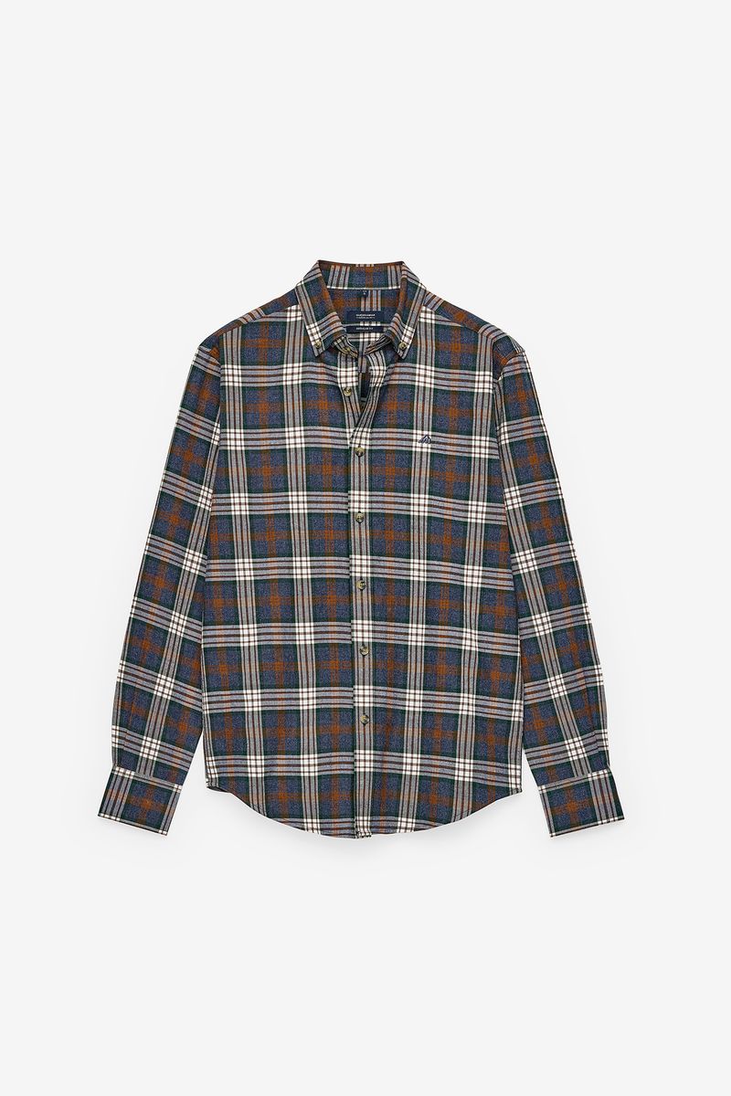 Long sleeve shirt with plaid pattern. The model features a classic collar, front opening with buttons and adjustable cuffs. With a traditional cut and discreet embroidery on the chest, it is a versatile and timeless piece, ideal for both casual looks and informal occasions.