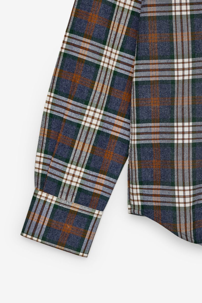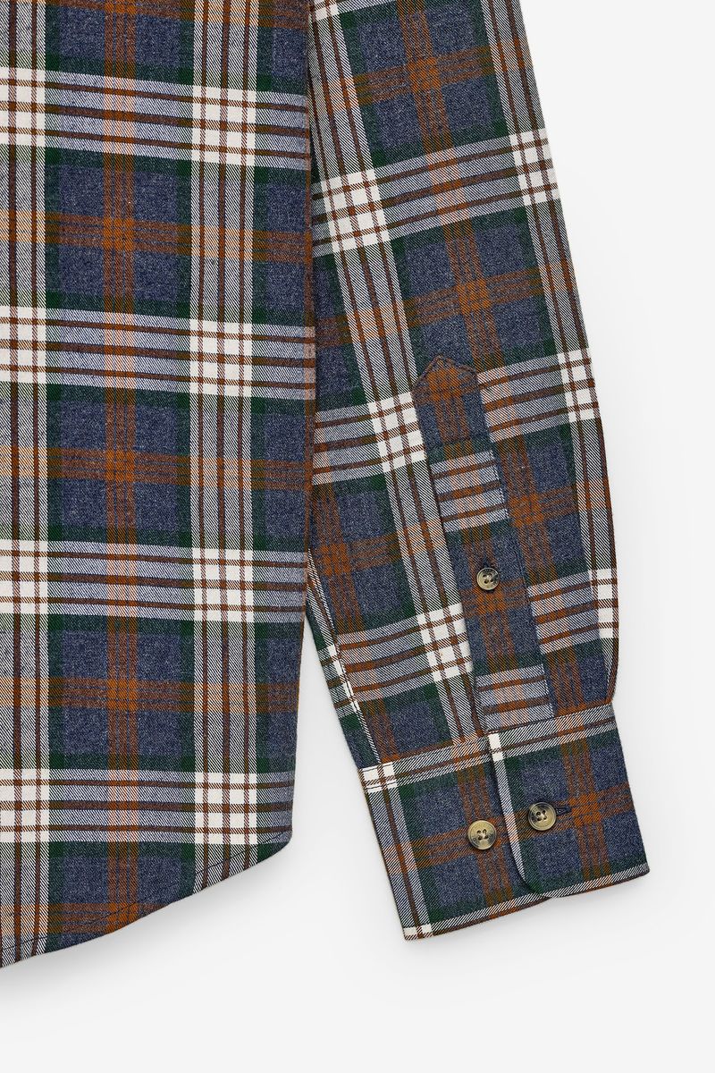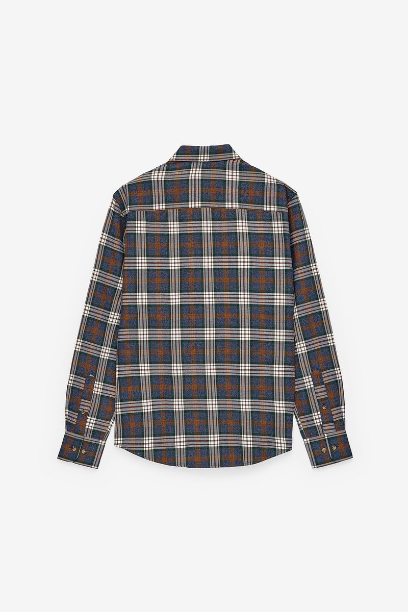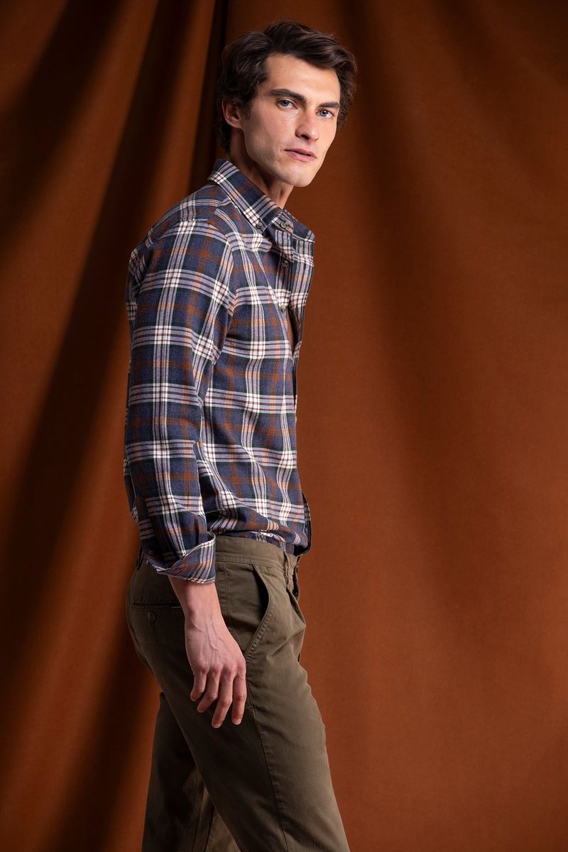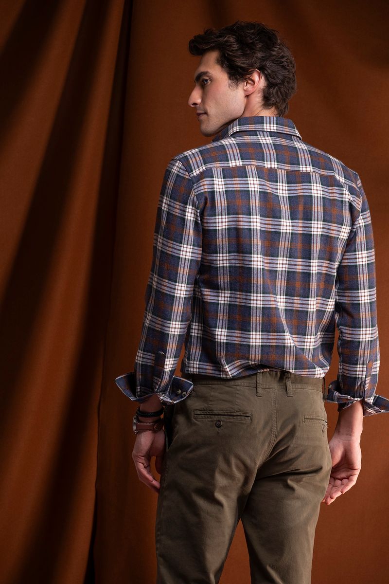 Long sleeve shirt with plaid pattern. The model features a classic collar, front opening with buttons and adjustable cuffs. With a traditional cut and discreet embroidery on the chest, it is a versatile and timeless piece, ideal for both casual looks and informal occasions.