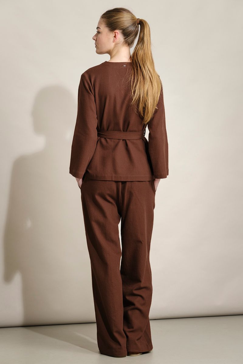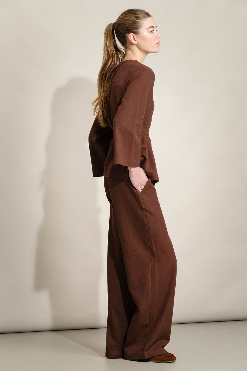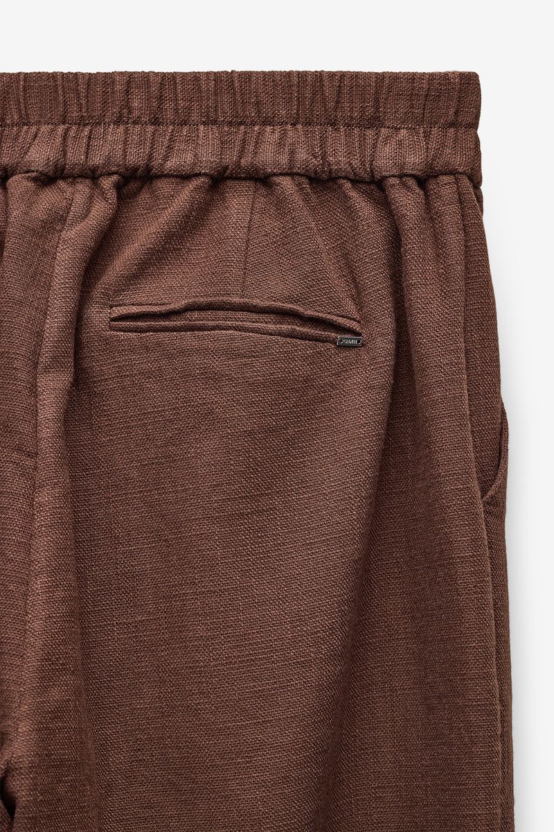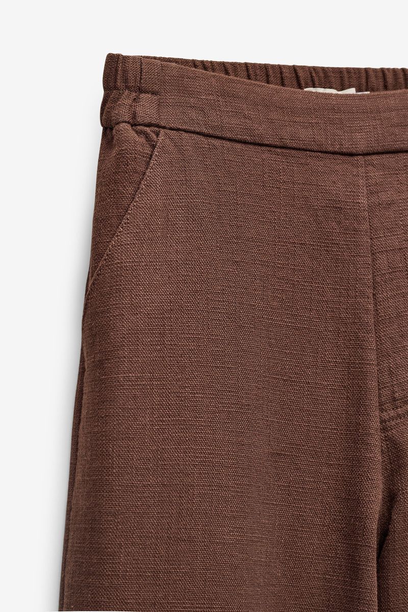 Calças femininas Quebramar confecionadas em tecido leve e confortável, com acabamento texturado e toque suave. O modelo apresenta cintura elástica para um ajuste prático e maior conforto ao longo do dia, e perna larga com caimento fluido, proporcionando liberdade de movimentos. Inclui bolso traseiro discreto, acrescentando funcionalidade ao design. Uma peça versátil e contemporânea, ideal para coordenados casuais e descontraídos, perfeita para usar em contexto urbano ou em momentos de lazer.