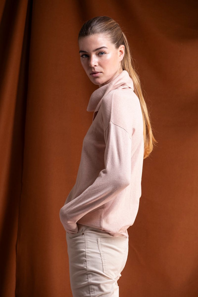 Camisola de malha de mulher com gola alta, ideal para os dias mais frios. Confeccionada em malha suave e confortável, oferece um ajuste prático e aconchegante. O design simples e intemporal torna-a uma peça versátil, perfeita para looks casuais ou mais cuidados no dia a dia.
