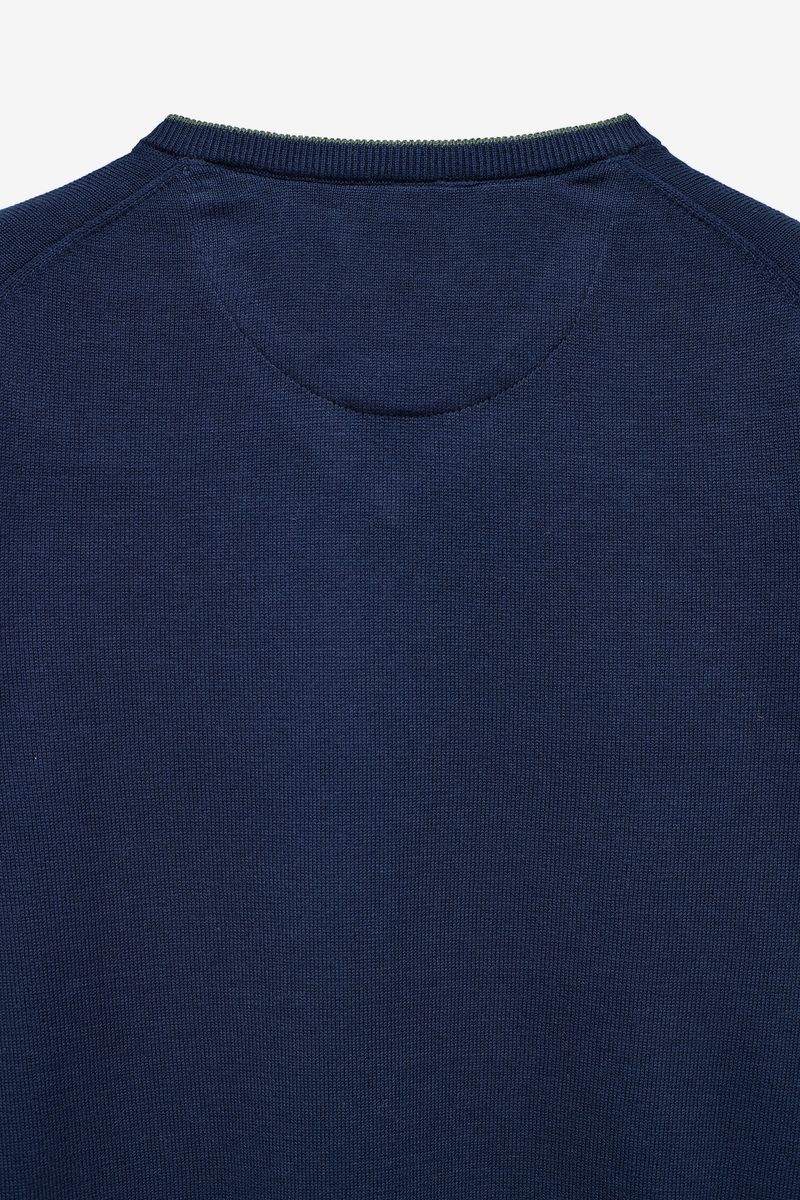 Com corte clássico e acabamentos canelados nos punhos e na bainha, adapta-se facilmente a diferentes estilos — perfeita para usar com camisa por baixo ou de forma mais descontraída.