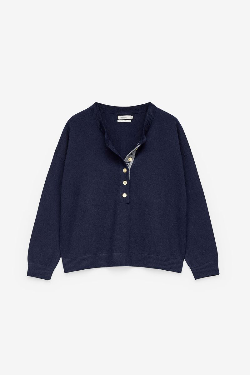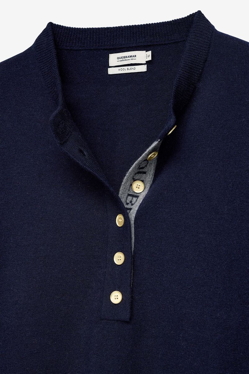 Camisola feminina em tricot premium composta por 80% lã, garantindo excelente isolamento térmico, toque macio e conforto superior. O modelo apresenta carcela frontal com vários botões, conferindo um visual contemporâneo e versátil — podendo ser usada mais aberta ou mais subida para maior aconchego.