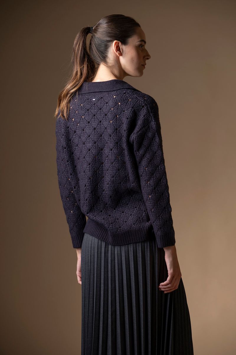 Camisola de malha com fantasia. Manga comprida. Gola e decote em v.