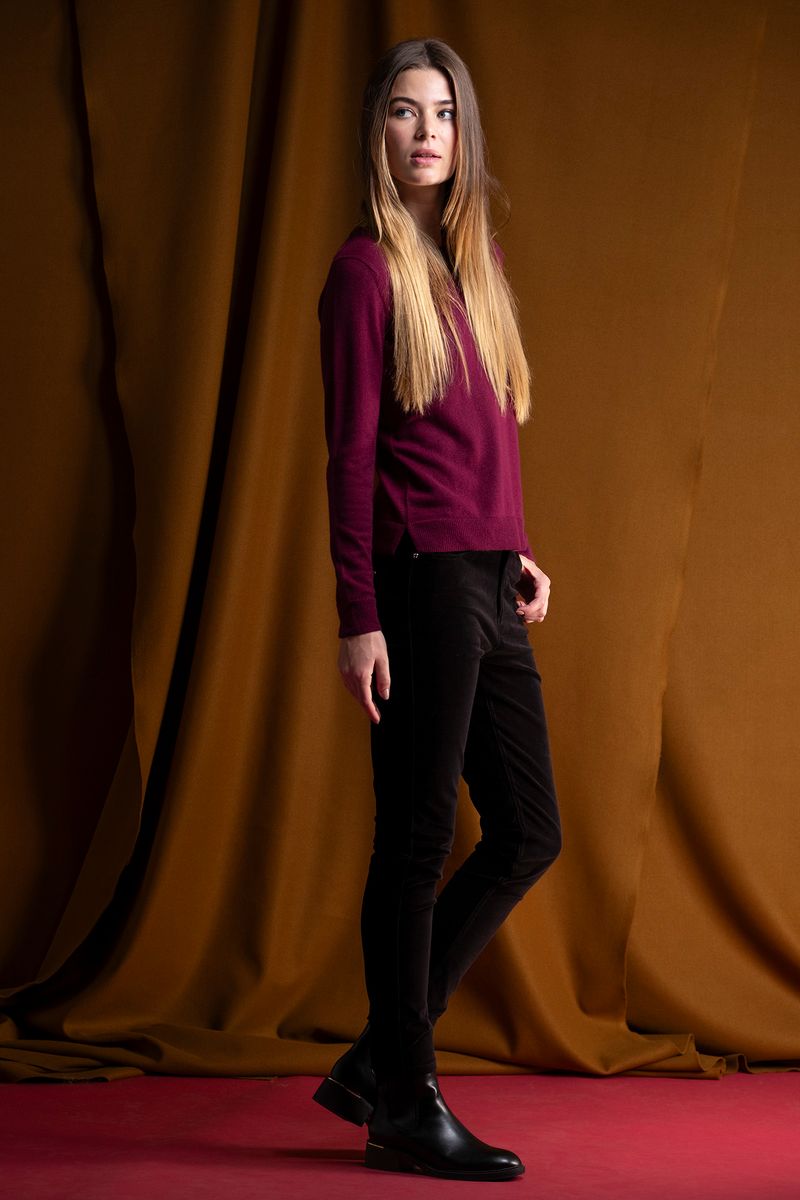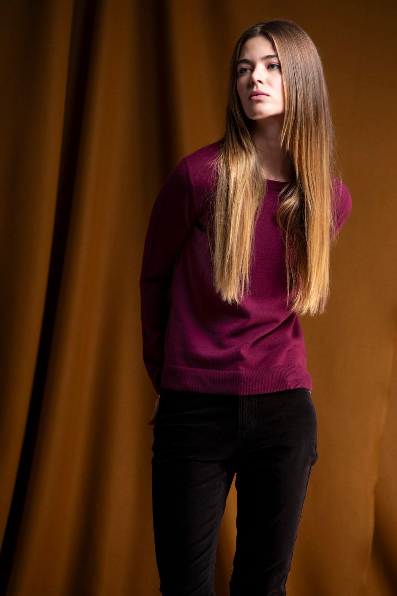 Camisola feminina em tricot premium, composta por 80% lã, garantindo elevado conforto térmico, suavidade ao toque e excelente durabilidade. O design minimalista com gola redonda e estrutura de malha fina confere um visual elegante e versátil, perfeito para o dia a dia ou para looks mais cuidados durante a estação fria.