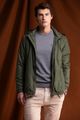 Blusão de homem em tom verde, com capuz integrado e fecho de correr frontal. Possui forro interior em polar, que proporciona maior conforto térmico nos dias mais frios. Um modelo prático e versátil, ideal para um look casual e funcional.