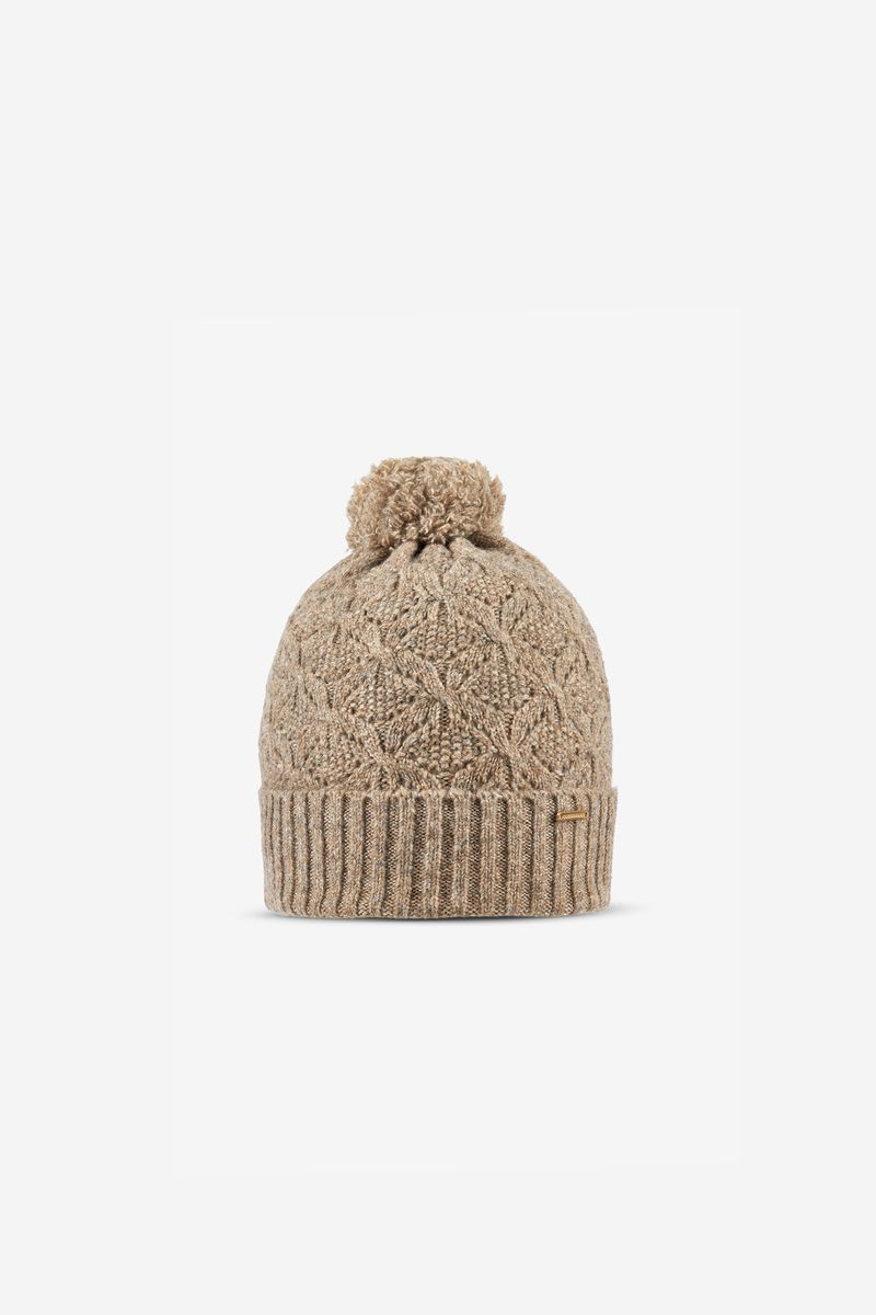 Gorro desenvolvido com padrão texturizado em relevo que acrescenta elegância e aconchego ao visual. Possui dobra canelada que garante melhor ajuste e aquecimento, além de pompom no topo para um toque clássico e estiloso. Conta também com uma pequena placa metálica decorativa na parte de trás, destacando o acabamento premium da peça. Ideal para dias frios, oferecendo conforto, estilo e versatilidade.