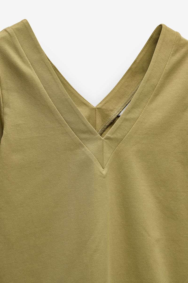 Camisola de mulher em malha leve, com decote em bico e design minimalista. Confeccionada em tecido suave e confortável, é uma peça versátil para o dia a dia, fácil de conjugar com diferentes estilos e ocasiões. O corte simples e contemporâneo adapta-se a looks casuais ou mais cuidados, funcionando perfeitamente como peça principal ou em sobreposição.